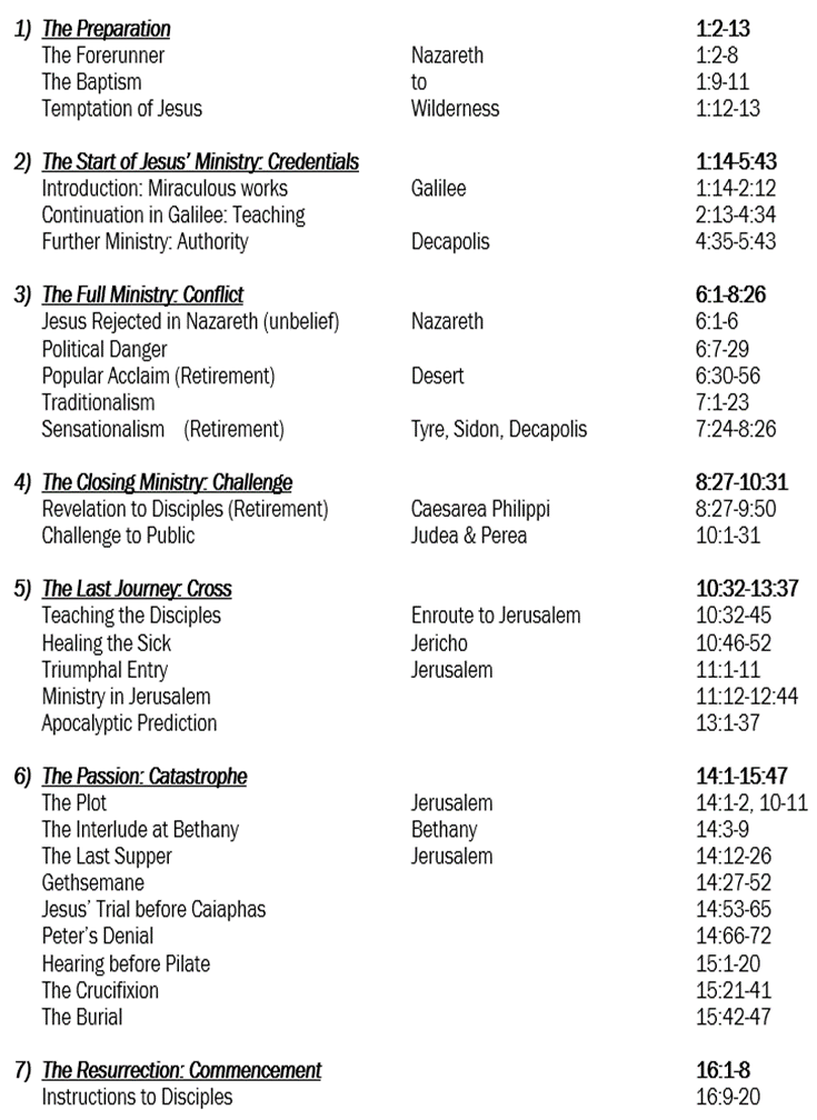 Following is an outline of the book of Mark that may be a helpful resource moving forward.