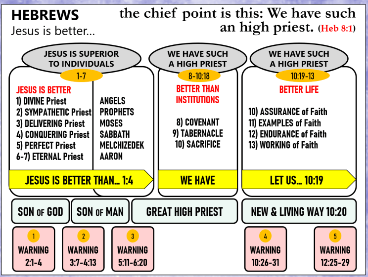 This overview study of Hebrews is being conducted at the Franklin & Juniper church of Christ each Wednesday at 6:30pm and is scheduled to last until April. (the first Wednesday of each month will be congregational singing). Click here for service times & directions.