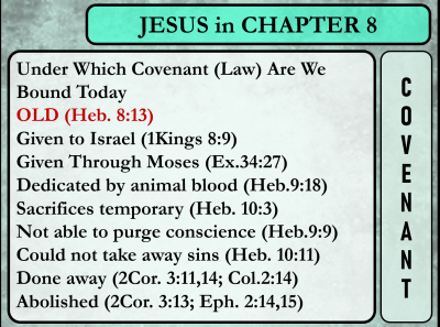 The Old Covenant is obsolete, growing old, and ready to vanish away. (now has vanished after the destruction of Jerusalem).