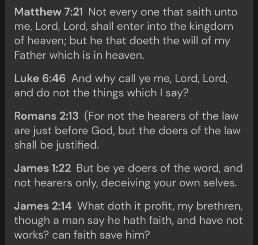 But be ye doers of the word, and not hearers only, deceiving your own selves. 23 For if any be a hearer of the word, and not a doer, he is like unto a man beholding his natural face in a glass: 24 For he beholdeth himself, and goeth his way, and straightway forgetteth what manner of man he was. 25 But whoso looketh into the perfect law of liberty, and continueth therein, he being not a forgetful hearer, but a doer of the work, this man shall be blessed in his deed.