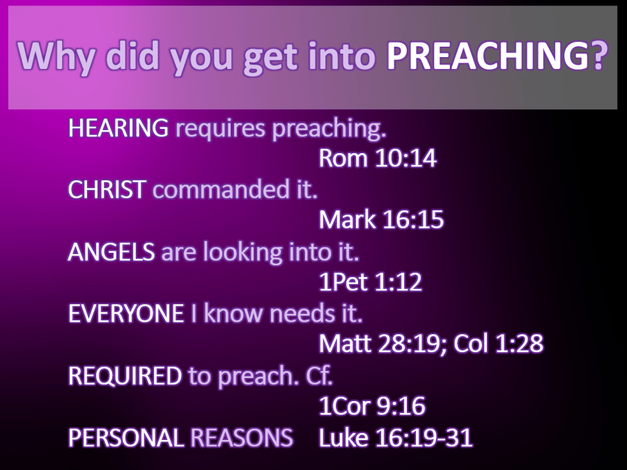 CHRIST commanded preaching. Mark 16:15) And he said unto them, Go ye into all the world, and preach the gospel to every creature. Before He ascended into heaven, Christ commanded that the Gospel be preached. Who am I to go against a command of Christ?