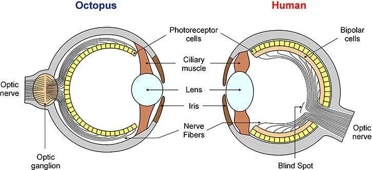 Take the camera-like eye found in both humans and octopuses. Despite no evolutionary link close enough to explain it, both possess retinas, lenses, and optic nerves in stunningly similar arrangements. Evolution suggests these complex structures emerged separately by chance, but the odds of such identical designs arising independently are astronomical.