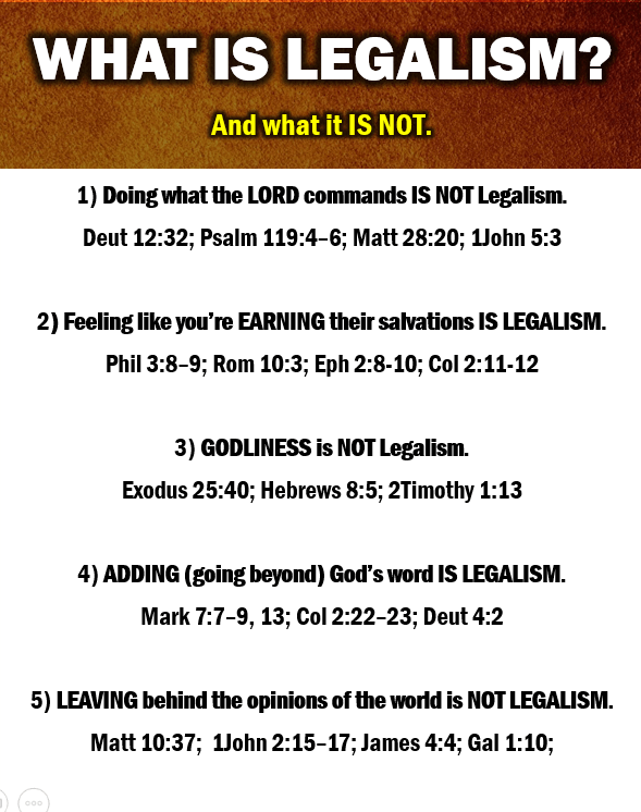Add (Legalism) To add to God’s Word, known as legalism, involves imposing human rules or traditions as divine mandates, distorting Scripture’s intent (Deuteronomy 4:2, Proverbs 30:6). Legalism burdens believers with extra-biblical requirements, as seen in the Pharisees’ elevation of oral traditions, which Jesus rebuked (Mark 7:8-13). This practice fosters self-righteousness, shifting focus from God’s grace to man-made standards.