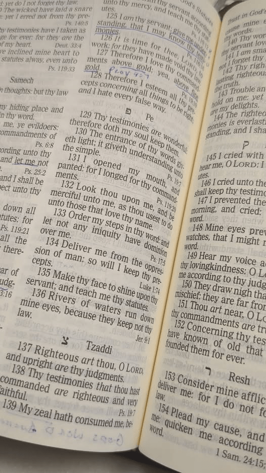 Look Up, & Look at Multiple Passages at one time. Comparing passages or cross-references is seamless with a physical Bible. You can flip between pages, bookmark multiple sections, or even lay the book open to view two passages side by side. Digital apps often make it cumbersome to switch between two, three, or four passages, requiring multiple taps or split screens that disrupt the flow. A physical Bible’s layout makes it easier to explore connections across Scriptures, enriching study and understanding.
