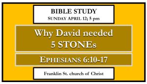 “Then he took his staff in his hand; and he chose for himself five smooth stones from the brook, and put them in a shepherd’s bag, in a pouch which he had, and his sling was in his hand. And he drew near to the Philistine.”